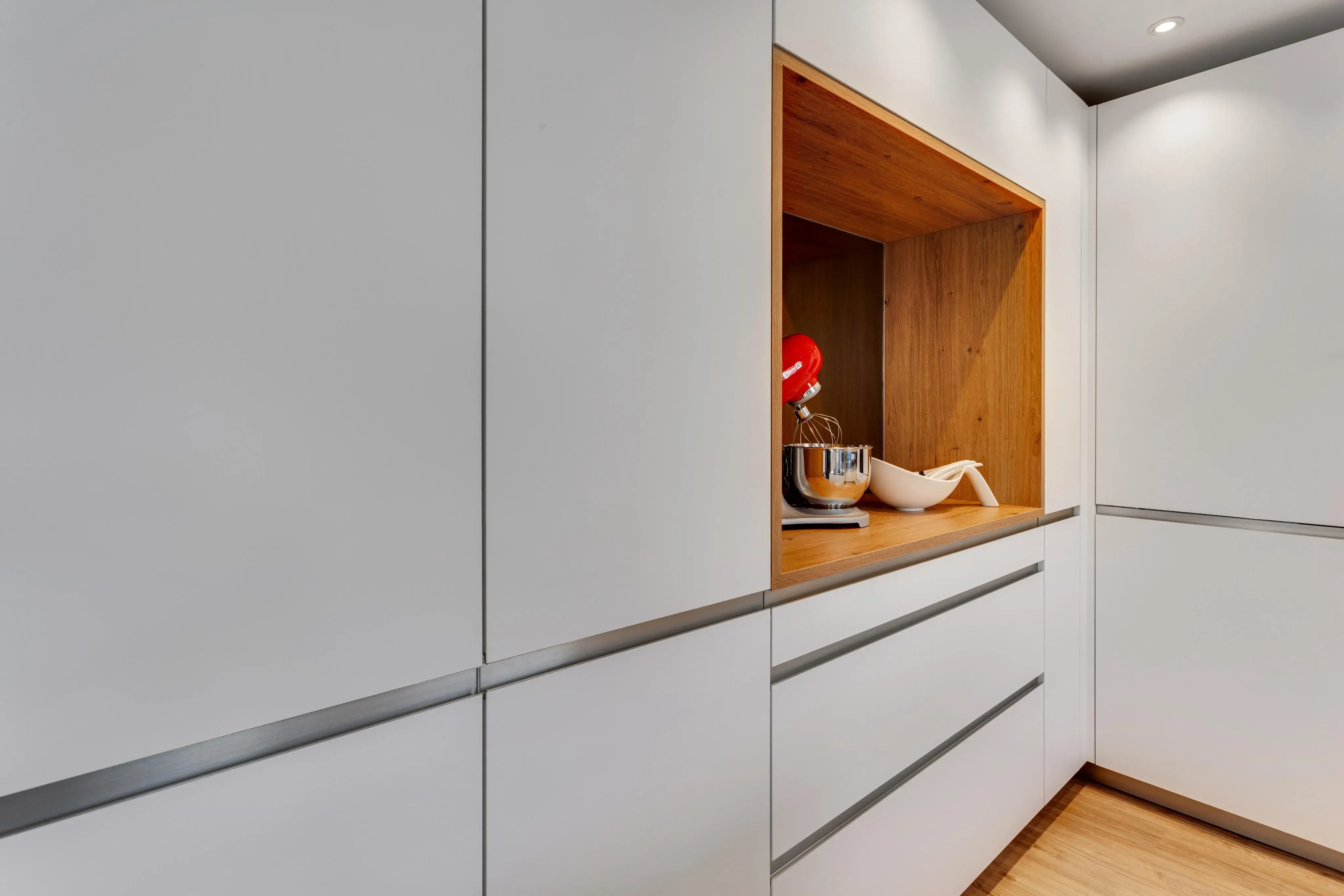 Bei der Planung beziehen wir alle räumlichen Gegebenheiten mit ein und haben immer das große Ganze im Blick. Selbstverständlich stimmen wir die Farben und Oberflächen der neuen Küche mit den vorhandenen Materialien Ihrer Räumlichkeiten ab, passen Ihre Schränke an die Tiefe der gewünschten Nischen an oder richten sie nach der Position von Oberlichtern aus.