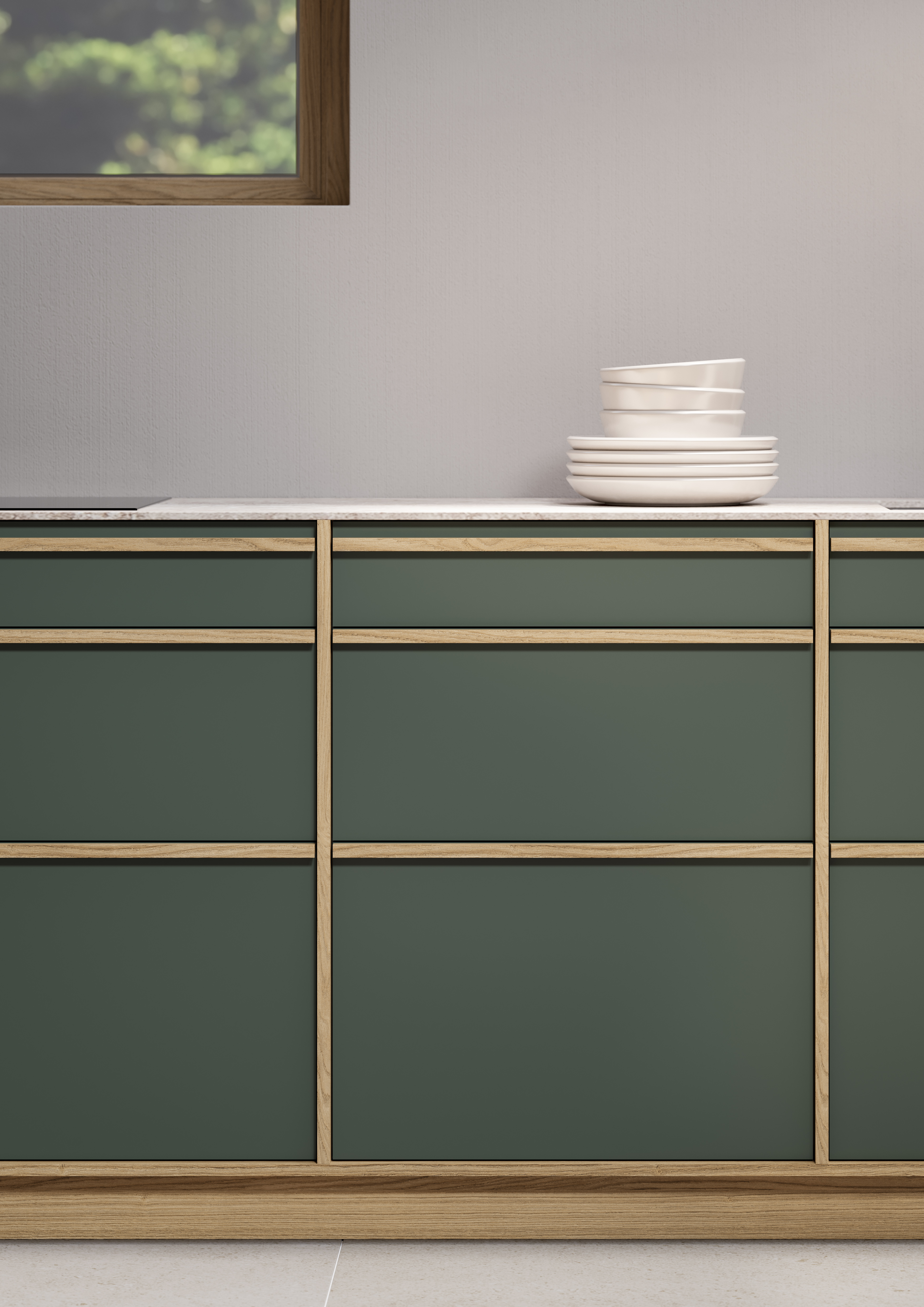 Je nach Farb- und Materialwahl sowie der Anordnung der Schränke von KYOTO entfaltet sich eine völlig andere Wirkung auf die Architektur des Raums. Die erweiterte Palette an Gestaltungsmöglichkeiten erlaubt es, Küchenräume flexibel an unterschiedliche Wohnkonzepte und genau an die Anforderungen der Planenden anzupassen – ohne dabei die bewährten Designprinzipien von KYOTO aufzugeben